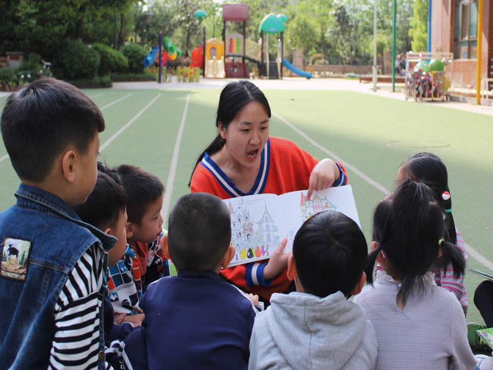 郑州市实验幼儿园的老师给孩子们讲故事