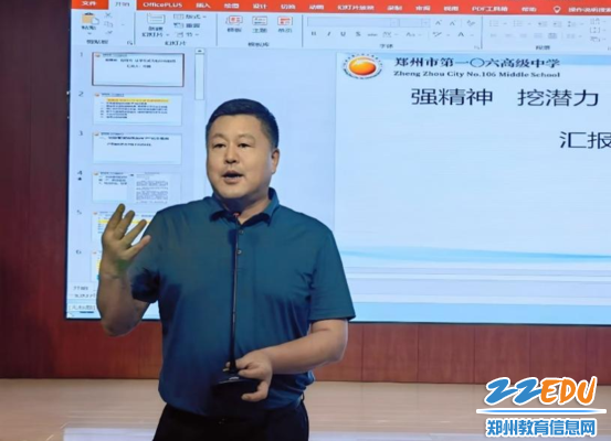 郑州市第一〇六高级中学党委书记李明德在交流会上进行指导