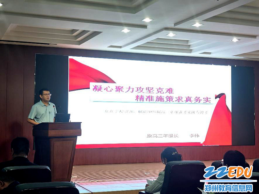 郑州市第一〇六高级中学校长胡庆周系统阐述了高三复习备考的顶层设计思路,从”全员参与、全程保障、全面提升”三个维度,明确了全员备考的系统方案,从构建“教学+管理+服务”三位一体的备考体系,指出了全员备考的实施路径。他勉励新一届高三团队响应教育使命的召唤,传承薪火,再启华章。